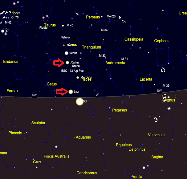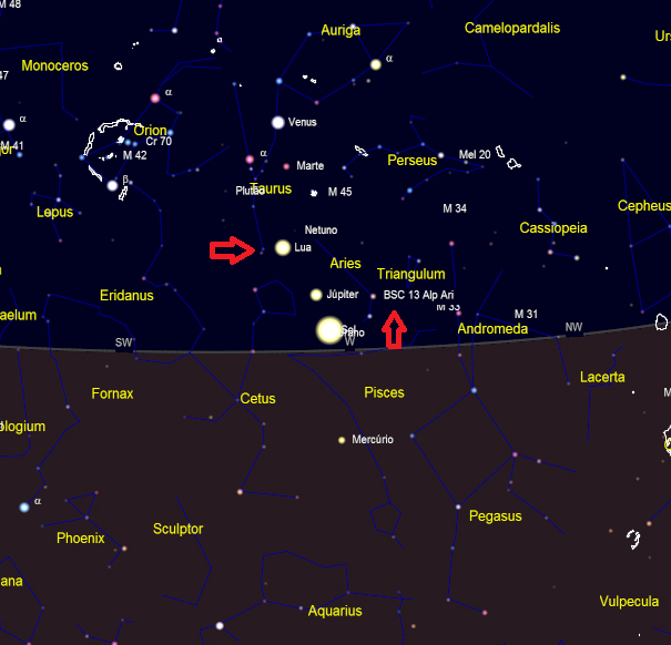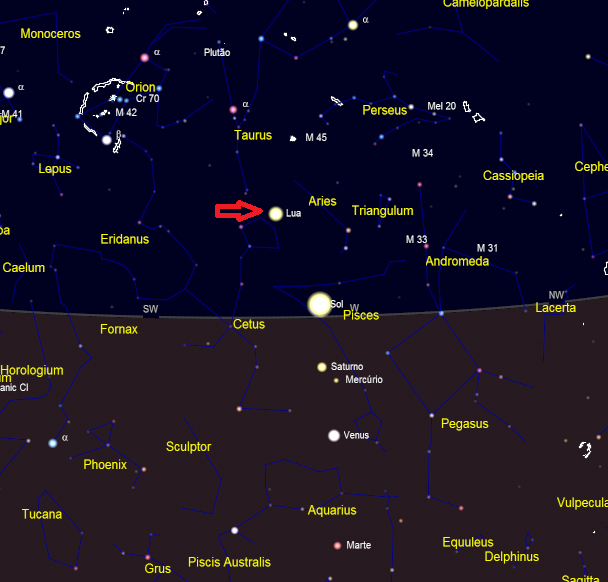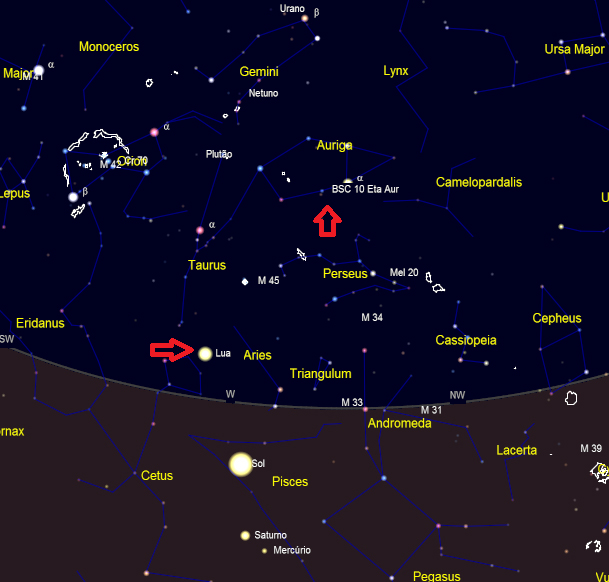 Na noite do dia indicado pela Torre de Vigia a Lua não estava exatamente abaixo, mas a sudeste e a 10,5 graus distante de η Touro.  A simulação do software não se encaixa com a data da Torre de Vigia, mas pode ser aceitável.