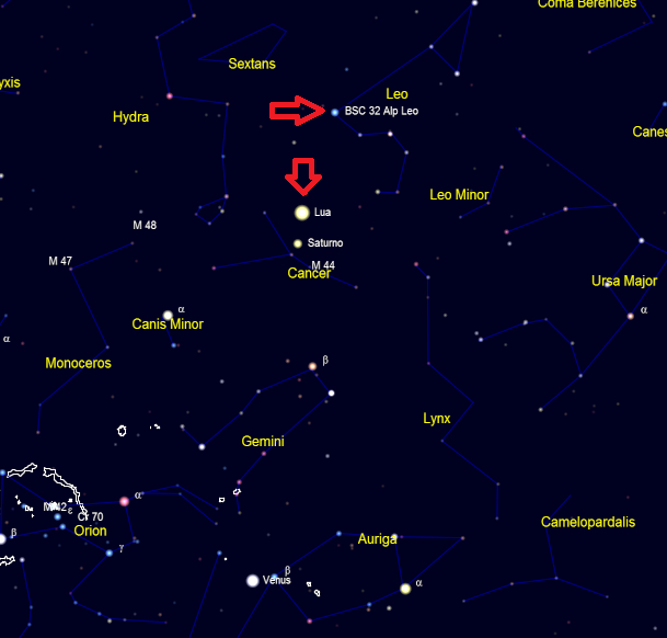 Na noite do dia indicado pelos historiadores a Lua ficou entre Alfa Leão e Presépio. 9Presépio é um aglomerado de estrelas próximo do centro da Constelação de Câncer. A simulação confere com a VAT 4956.