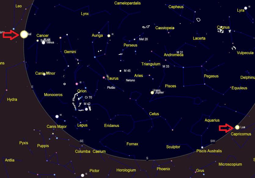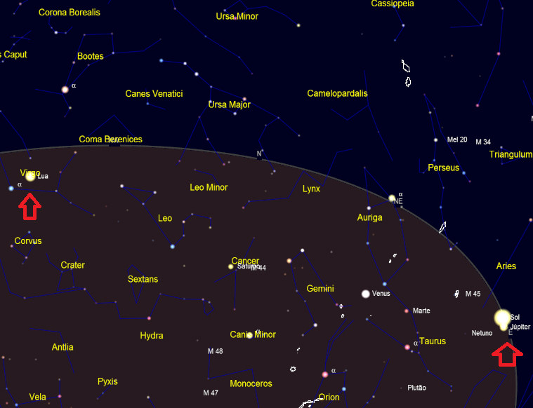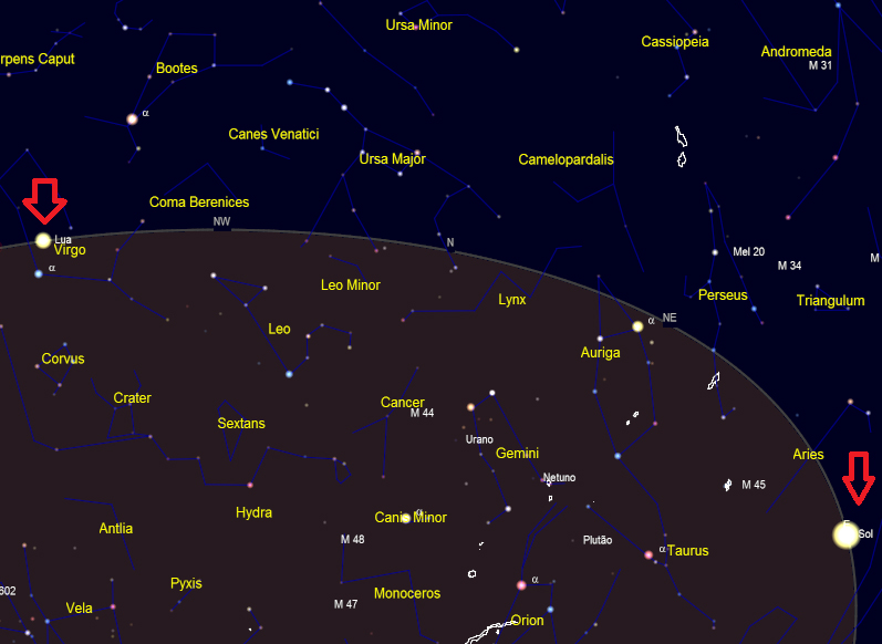Como já sabemos à base da observação 8 “um deus ser visto junto com o outro” quer dizer que naquela data o Sol e a Lua podiam ser vistos acima do horizonte. No caso, por cerca de 6 minutos segundo a tabuinha. O software simula um tempo de 3 minutos de visualização de ambos conforme indicado na figura. A simulação confere com a VAT 4956 com valor muito aproximado.