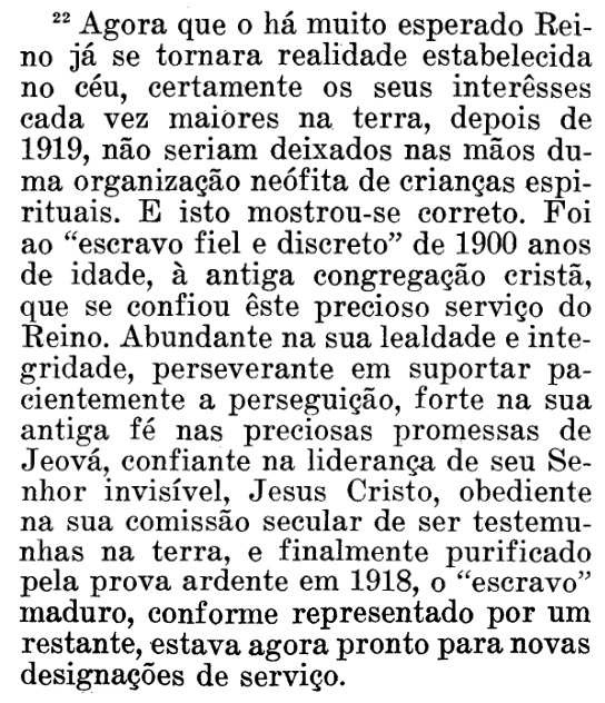 10 – Veja no livro As Testemunhas de Jeová no Propósito Divino (em inglês), páginas 91 e 124, a informação sobre este conceito ainda em 1959.