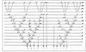 Darwin thus used the illustration of a tree to picture the descent of all living things from possibly one primordial form, with the green and budding twigs representing modern species and the root being the presumed universal common ancestor. Harvard neo-Darwinist Ernst Mayr stated in 1991 there is probably no biologist left today who would question that all organisms now found on the earth have descended from a single origin of life. [Image: The Tree of life image that appeared in Charles Darwin’s On the Origin of Species by Natural Selection (1859). This is the only figure in the book.].