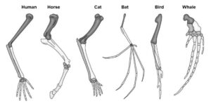 Popular View: The skeletal similarities in the forelimbs of vertebrates (e.g., bats, porpoises, horses and humans) indicate common descent from the same progenitor. Among Darwinists, homology is understood to mean features inherited from a common ancestor.