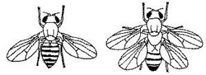 Popular View: Since 1978 four-winged fruit flies (Drosophila melanogaster) have become an increasingly popular means of illustrating how gene mutations can produce large-scale changes that affect the morphology or body shape of an organism. Without such morphological changes it is apparent that evolution could not take place. [Image: Comparison of a normal and a four-winged fruit fly. The third thoractic segment has developed as a duplicate of the second due to a defectic homeotic gene. In the normal fly only the second segment develops wings.]