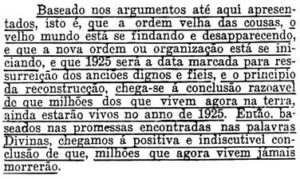 [26] Milhões Que Agora Vivem Jamais Morrerão (1923), página 110. Veja Crise de Consciência, capítulo 8 para uma documentação mais detalhada desta publicação.