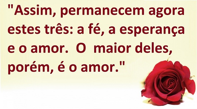 O amor nunca falha, porque Deus é amor e o amor é a maneira dele de fazer as coisas. Quando Paulo escreveu aos coríntios, explicando o que é o amor, ele fez o seguinte comentário concludente: “Assim, permanecem agora estes três: a fé, a esperança e o amor. O maior deles, porém, é o amor.” (1 Coríntios 13:13. ).