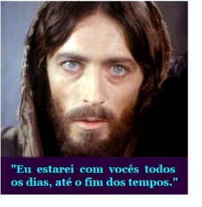 Embaixo: Última cena do filme Jesus de Nazaré, Franco Zefirelli, 1977. (Texto: Mateus 28:20).